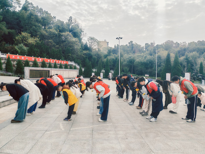 上午十时,活动在庄严的国歌声中正式开始。全体人员在党支部的带领下整齐肃立,高唱国歌,激昂的旋律回荡在陵园上空。随后,现场集体肃立默哀一分钟,向死难同胞与革命英烈表达沉痛哀思与崇高敬意。默哀结束后,在党支部的组织下,全体人员面向巍峨的烈士纪念碑,庄严行三鞠躬礼。