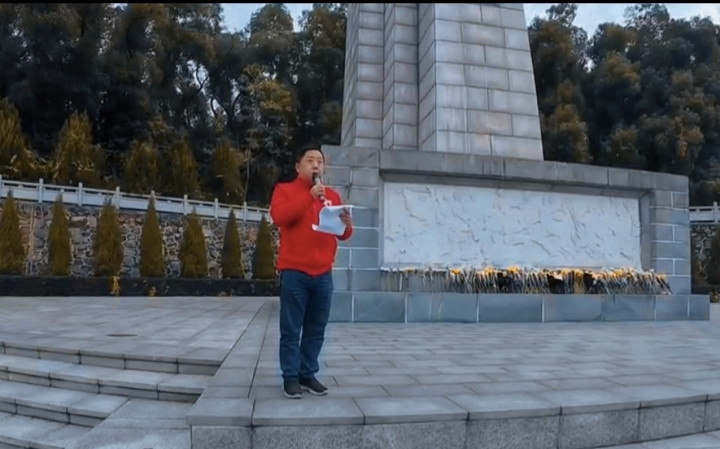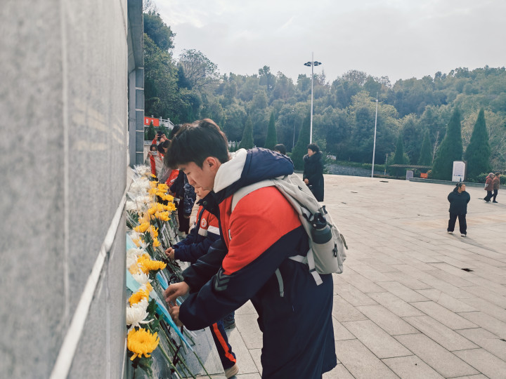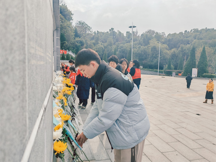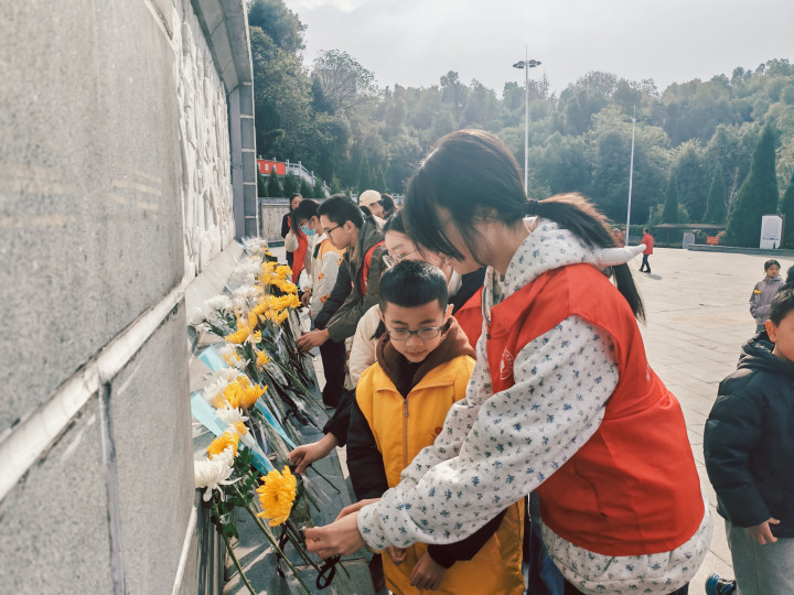 讲话结束后,在党支部成员的带领下,党员与青少年们手持鲜花,依次缓步上前,向烈士纪念碑敬献鲜花。孩子们神情庄重,动作恭敬,随后全体人员绕碑瞻仰,静默的步履间接受精神洗礼,表达对先烈的崇高敬意与绵绵哀思。